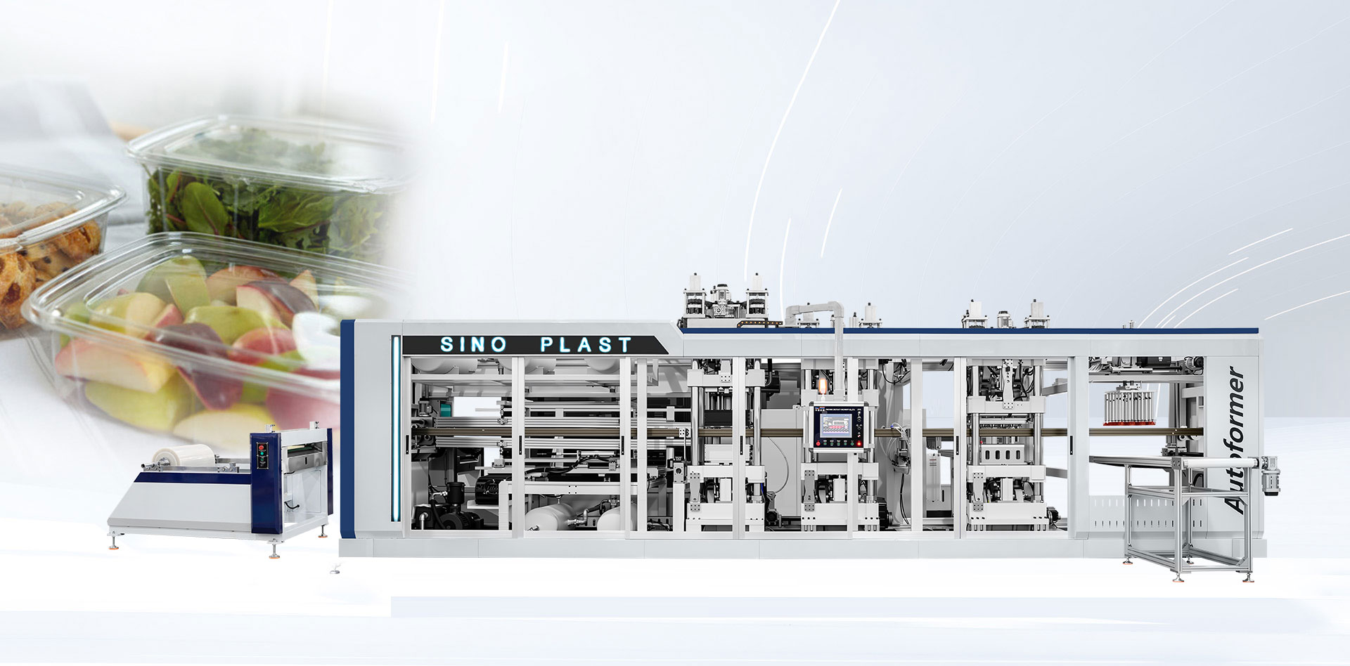 آلة التشكيل الحراري متعددة المحطات من سينوبلاست، والمعروفة باسم معدات 3 أو 4 محطات، قادرة على إنتاج حاويات بلاستيكية يمكن التخلص منها باستخدام مواد مثل PP وPS وPET وPLA.