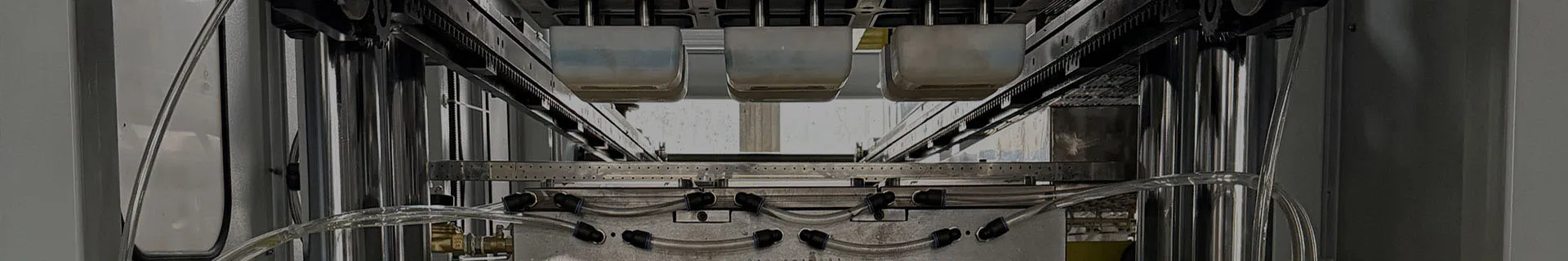 Pour les clients souhaitant un rendement élevé, notre équipement de moulage 760 x 540 mm est disponible. Ce plus grand format de moulage permet au moule d'accueillir davantage d'empreintes. La vitesse de fonctionnement de l'équipement dépend bien sûr de la profondeur du produit et de l'épaisseur de la tôle. Plus le produit est profond, plus le temps de moulage est long. Une vitesse de fonctionnement trop élevée peut entraîner un moulage incomplet.