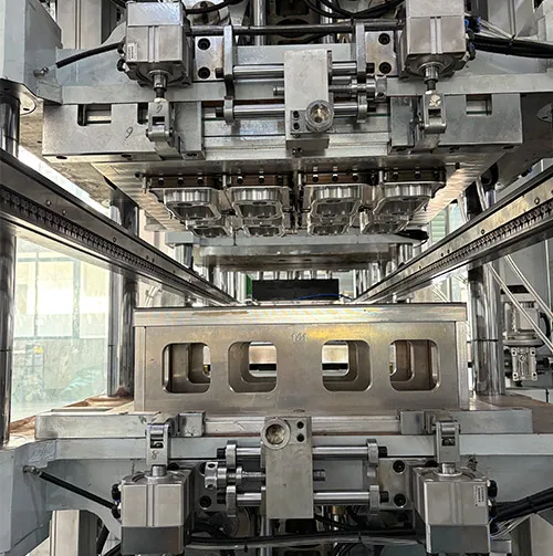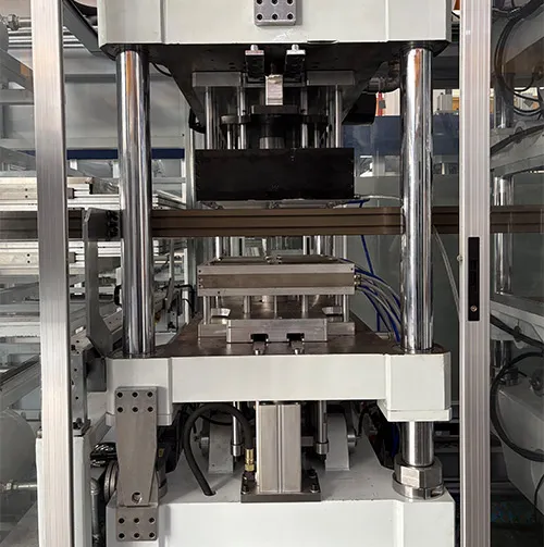 The whole plastic lunch box making machine is equipped with a total of 6 servo motors, one located for feeding and one for stacking. Two for molding and two for cutting. Servo motor drive has high-precision positioning capability, which can meet the high-precision application requirements. At the same time, servo motor drive has a large overload capacity, which can withstand large loads in a short period of time without damage, thereby improving the quality of the machine.